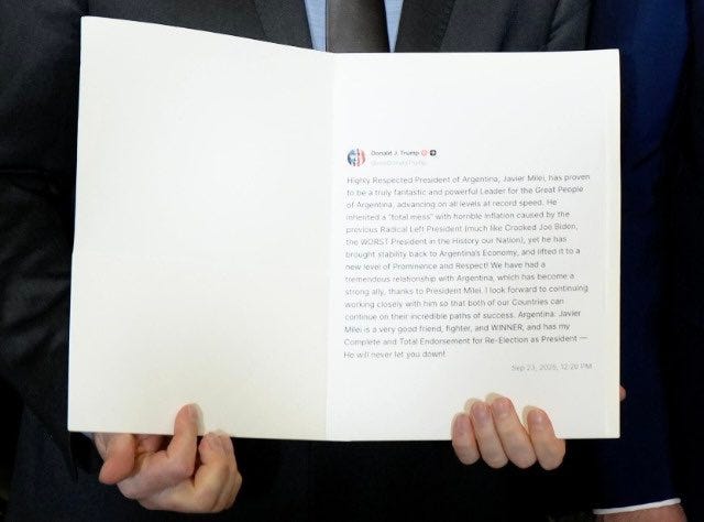 What in the actual nightmare was that document that Trump gave to Milei? Was it a social media post screenshot??
